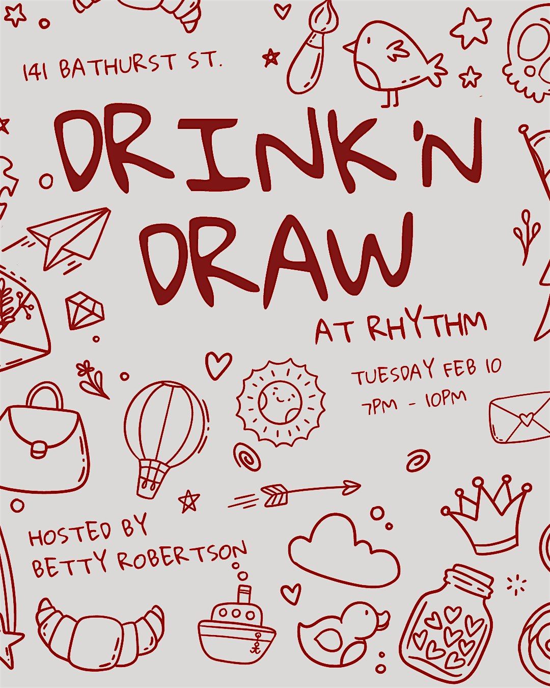Our Drink and Draw at Rhythm is officially a recurring event. Come get cozy with a sketchbook or a napkin and join us at Rhythm for our second evening of social drawing, hosted by Betty Robertson. Tuesday, February 10th, 7-10PM.