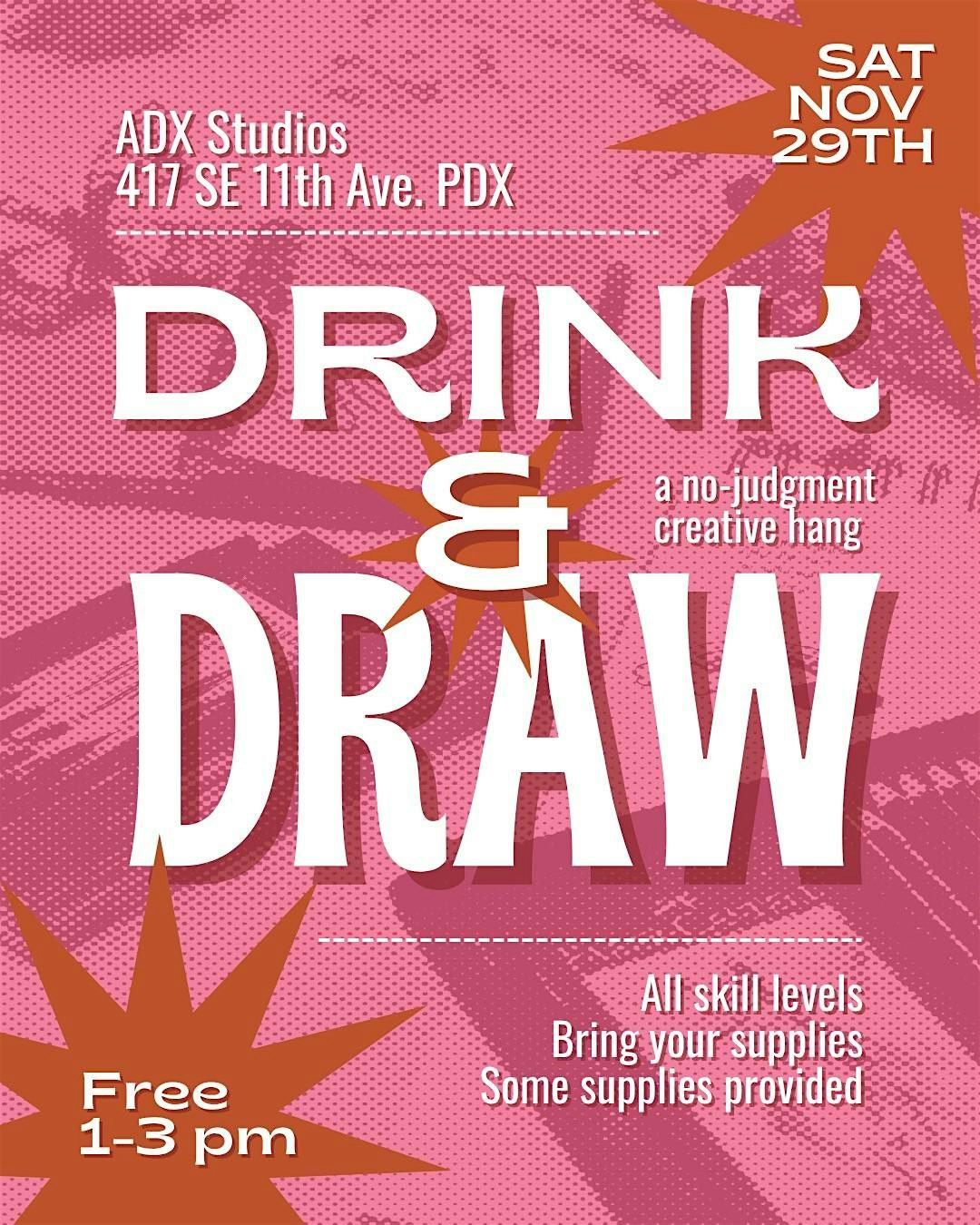 Join us at ADX for a Drink and Draw hosted by Mashall Sharma. Organized to gather community members together during the holiday season to connect and create together. All are welcome- come alone or bring a friend! Let’s be in community during the holidays and build community together!
