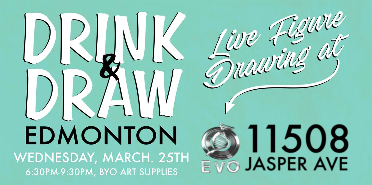 Are you ready to get those pencils out again to draw nude or nearly nude people right here in the heart of Edmonton? As per usual, bring your own supplies and arrive early to grab your ideal seat! The mezzanine of Evo will open for 6:30pm, however Evo is open at 4pm so feel free to arrive early and grab your food and drink beforehand.
