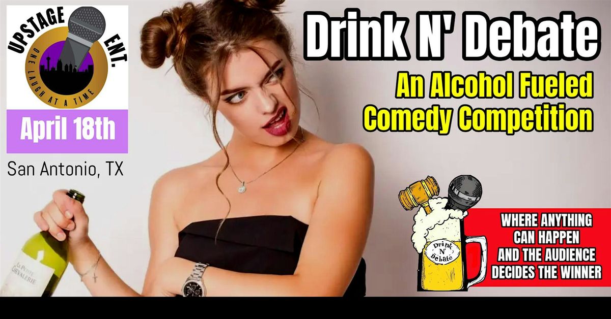 Drink N' Debate is the no holds barred comedy event, where anything can (and does) happen! Watch these nationally touring comedians go head-to-head in an alcohol fueled comedy competition, as we give them a random topic, and they argue their way through three booze filled rounds from the historical to the hysterical, and YOU, the audience, help us decide who gets the title of Master Debator.