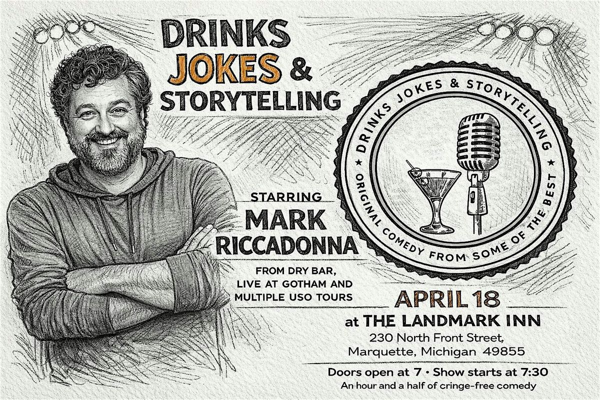 Get ready for a night of good vibes and great laughs! Stand Up Comedian Mark Riccadonna is bringing his sharp wit and captivating stories to Marquette, making it perfect for anyone looking to unwind, sip drinks, and enjoy a unique storytelling experience.
