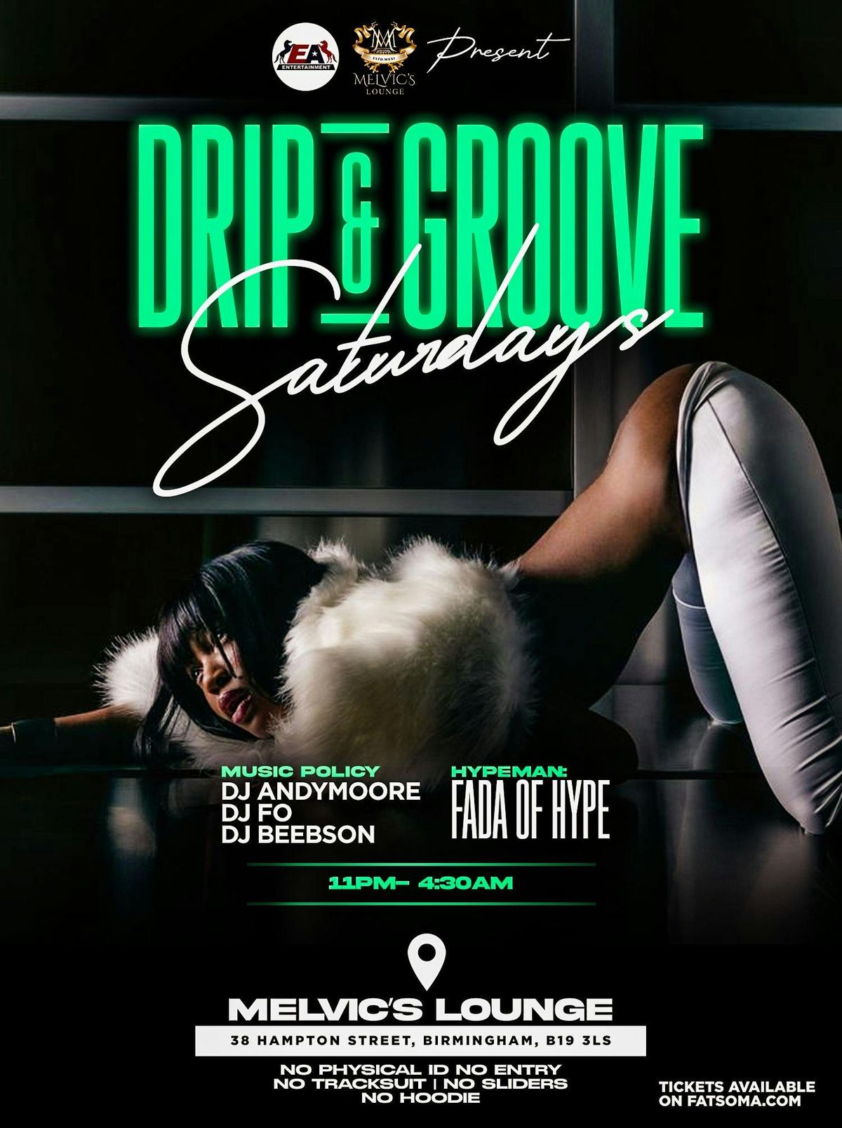 Drip, groove, repeat 🔥Saturday nights done right at Melvic’s Lounge. Expect smooth vibes, high energy, and non-stop heat from DJ Andymoore, DJ Fo, and DJ Beebson with Fada of Hype on the mic. Dress sharp, come correct, and let the rhythm take over from 11PM till 4:30AM.