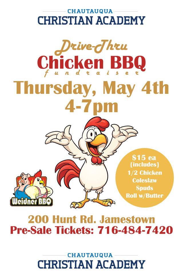 Feed the Fam and support CCA with our Drive-Thru Chicken BBQ on Thursday, May 4th from 4-7pm. Chicken dinners will be cooked and provided by Weidner BBQ and $15 meals include 1/2 Chicken, Coleslaw, Spuds, and a Roll with butter. Tickets available for pre-sale through CCA students or by calling the school office at 716-484-7420