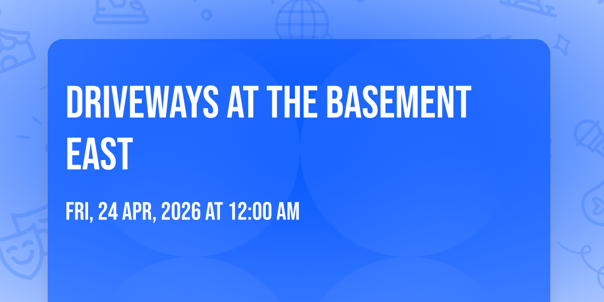 🎉 Welcome to Driveways at The Basement East, where the impossible becomes possible and dreams take flight! 🏛️ Join us at The Basement East in the heart of Nashville, TN for an event that will redefine your expectations. 📅 On April 24th, 2026 at 12:00 AM, witness the transformation of space and time into something truly magical. ✨ It's a curated experience combining the best of innovation, entertainment, and community spirit, creating moments that will be remembered for years to come. Whether you're a first-time visitor or a seasoned enthusiast, prepare to be amazed. 🎊 Book now to ensure your place in this unforgettable experience!