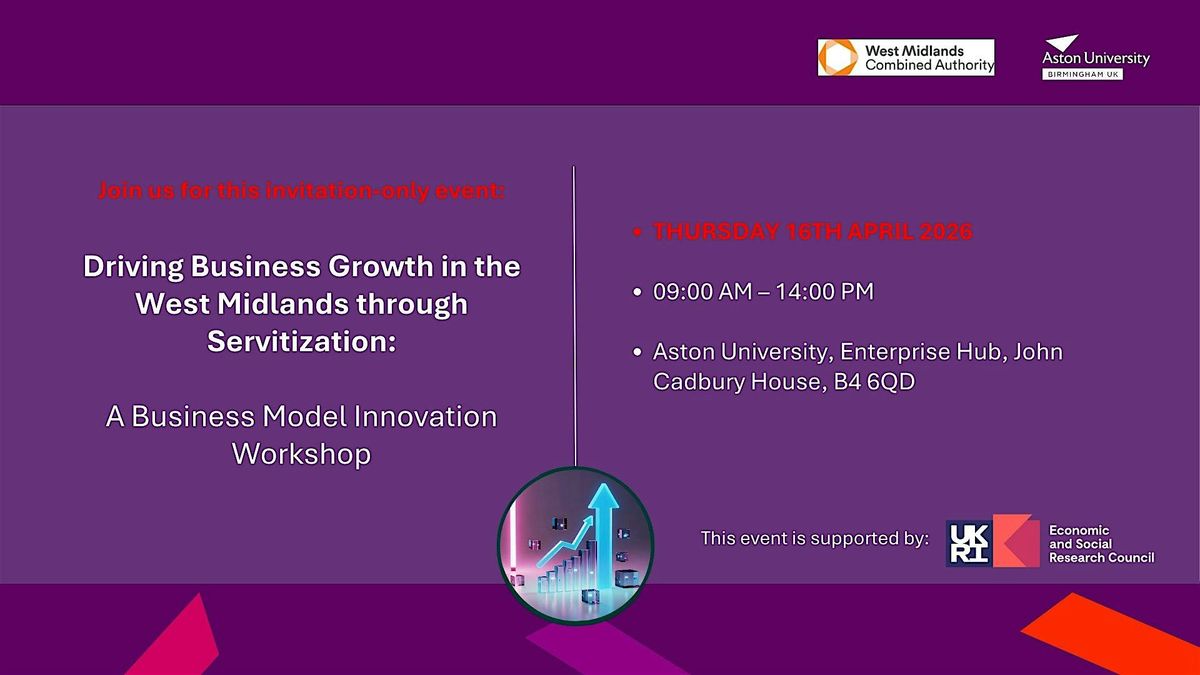 Please join us for this invitation-only workshop on driving business growth in the West Midlands through Servitization, hosted by the Advanced Services Group at Aston University, and the West Midlands Combined Authority.