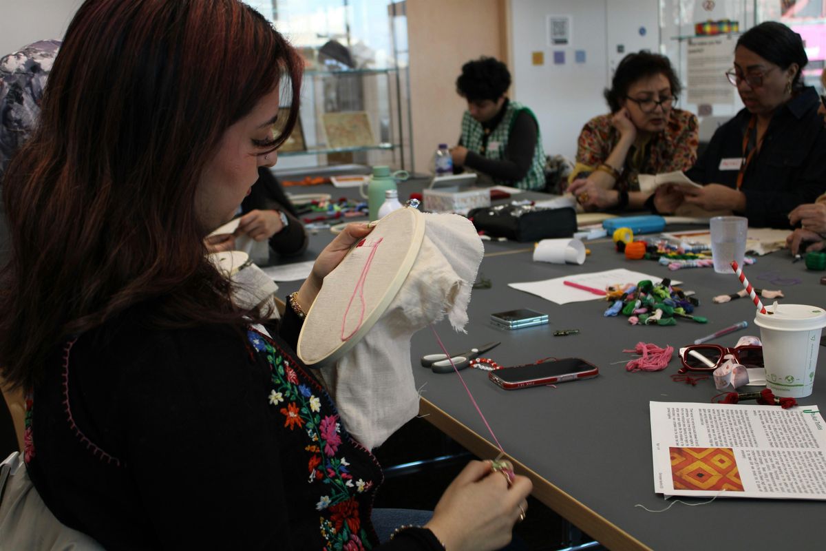 Meet some of the local artists involved in the Patterns and Belonging display. Try your hand at Indian block printing, book-making and Nakshi Kantha stitching.