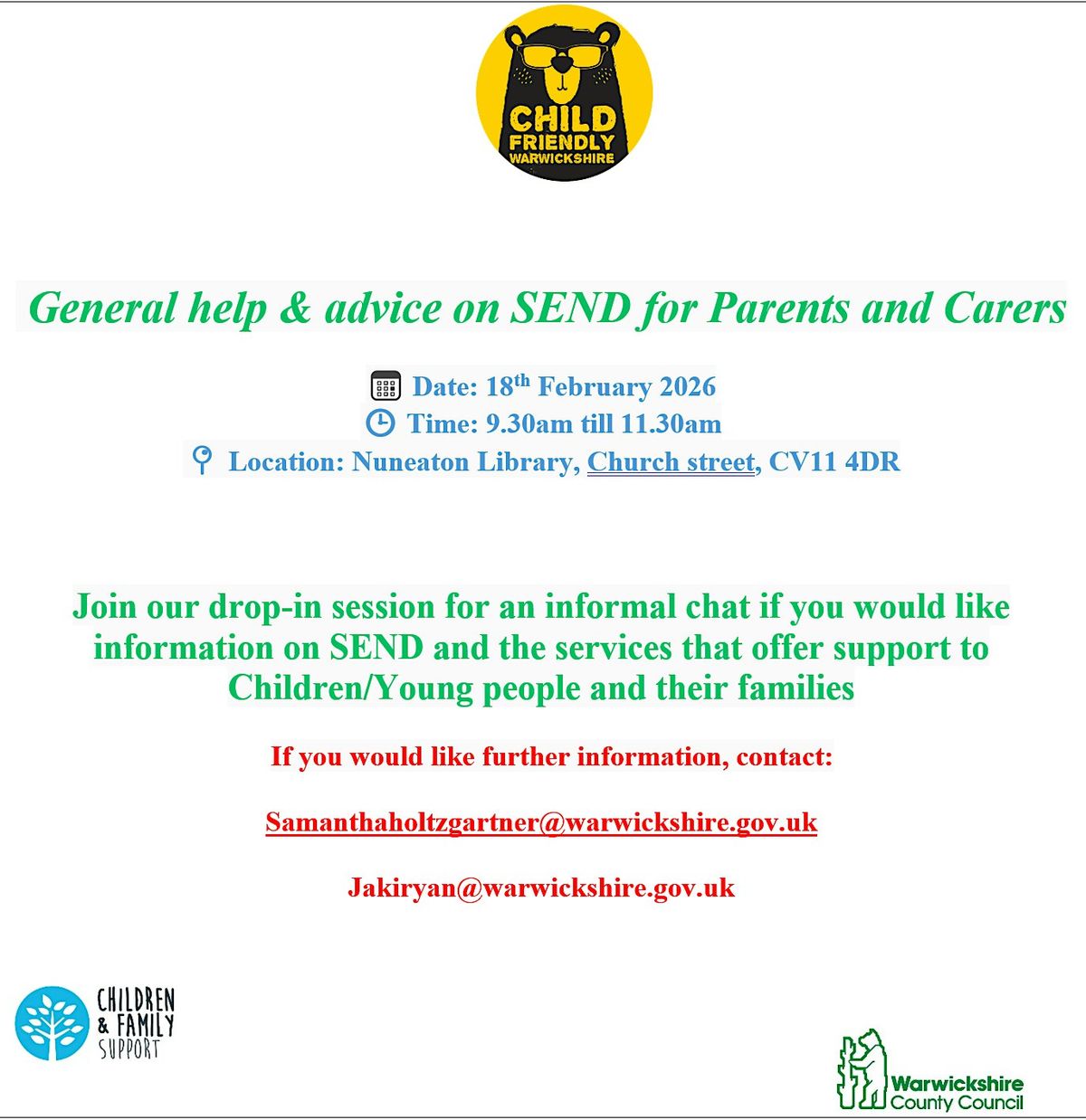 Join our drop-in session for an informal chat on SEND & the services that offer support to children & their families