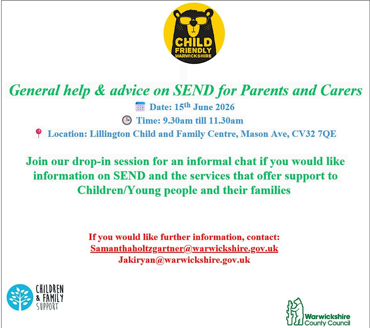 Drop-in session for help & advice around the local SEND offer