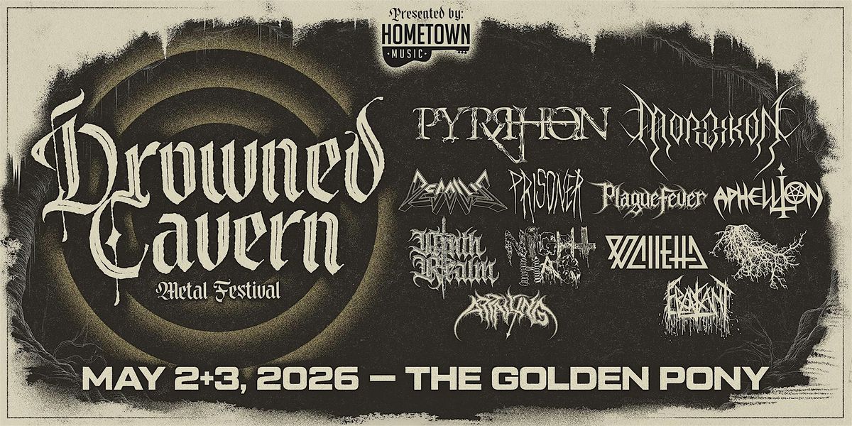 Hometown Music & The Golden Pony proudly present the second annual Drowned Cavern Metal Festival on May 2 & 3, 2026! We're bringing you two days of relentless chaos from some of the heaviest hitters on the east coast! Both single-day & weekend passes are available now!