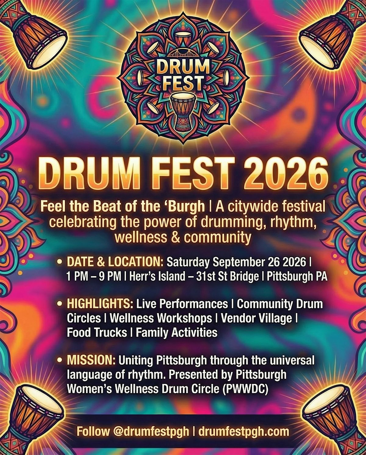 Pittsburgh’s heartbeat is drumming strong — DRUM FEST 2026 is coming to Herr’s Island on Saturday, September 26 | 1 – 9 PM!