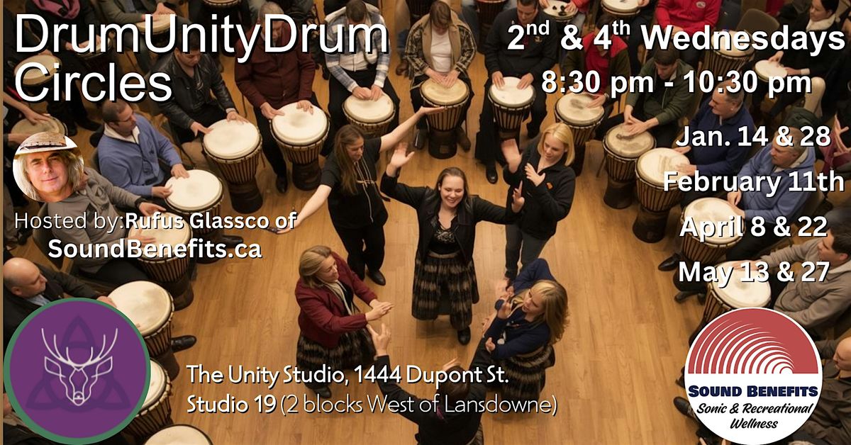 ๐ Drumunity Drum Circles take place the second and fourth Wednesday of each month (except for the end of Feb and in March). starting on January 14th - future dates include: January 28th, February 11th, April 8th & 22nd, and May 13th & 27th.