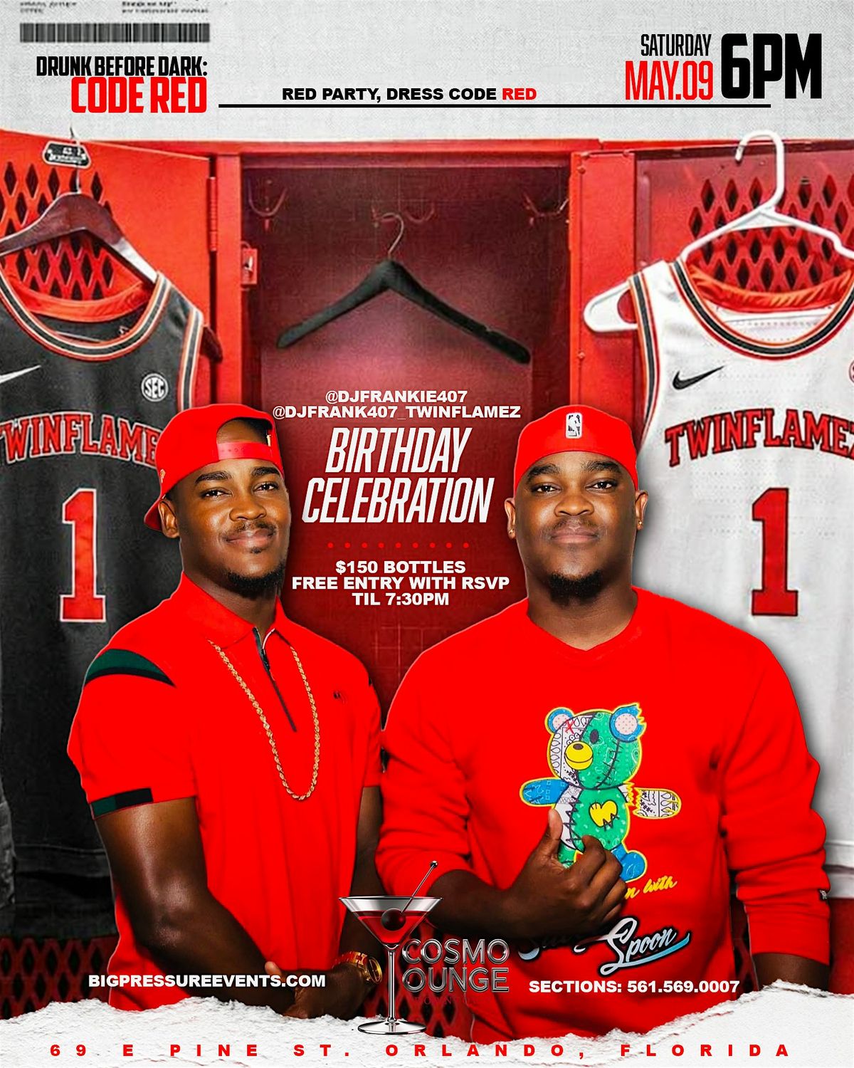 Join us in person for a night of wild fun and unforgettable vibes. Drunk Before Dark is back with the CODE RED edition as we celebrite our fav dj twins Frank & Frankie — expect good drinks, great people, and crazy memories. Don’t miss out on the party everyone’s gonna be talking about. Come thirsty and ready to let loose!