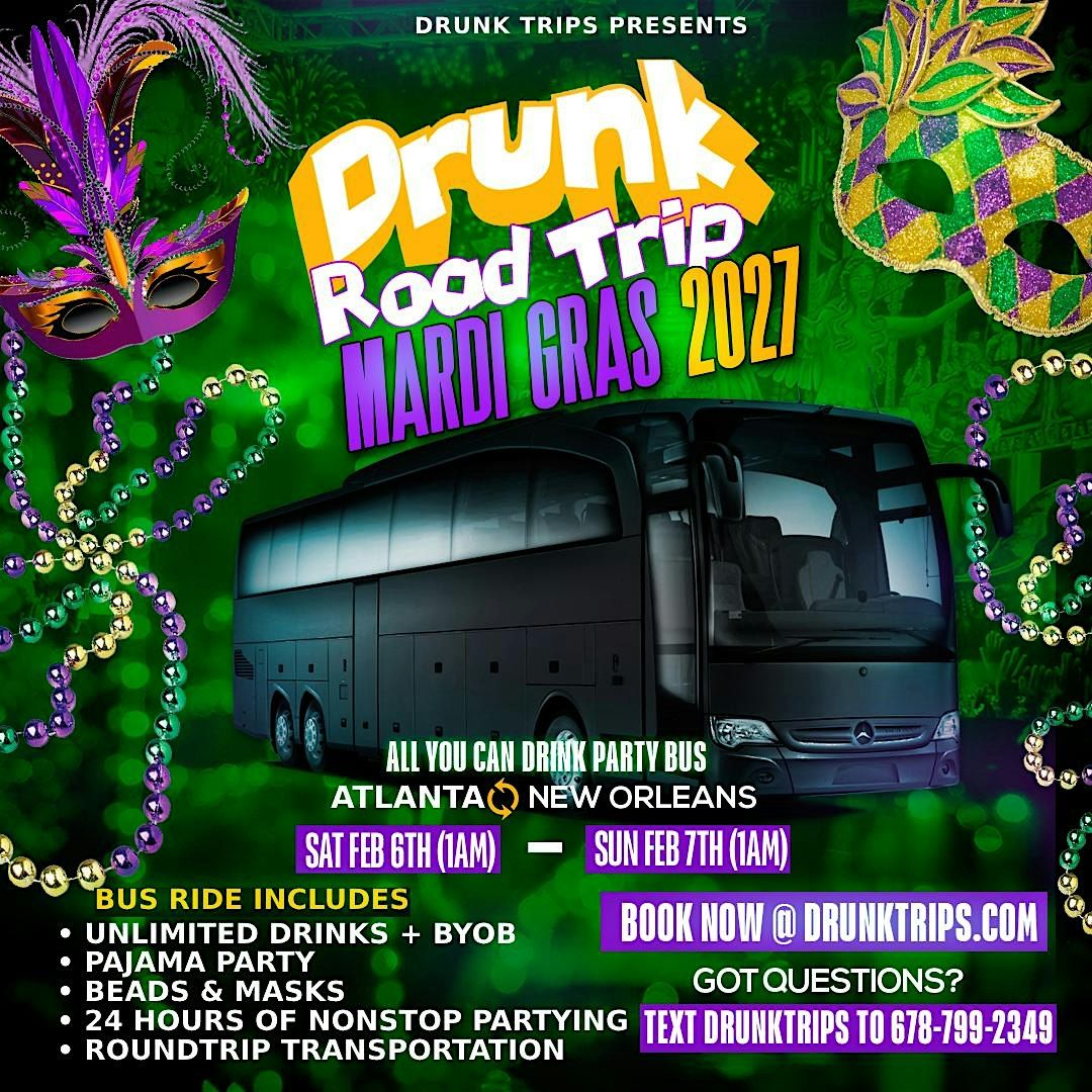 Drunk Road Trip Mardi Gras Party Bus Trip 2027