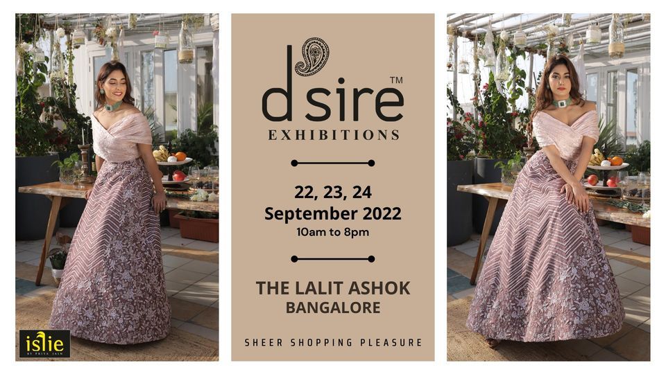 D'sire exhibitions invites you to a spectacular 3-day exhibition in Bengaluru on 22, 23, 24 September 2022 at The Lalit Ashok. Witness a confluence of culture and craftsmanship finely woven into luxurious creations in fashion and lifestyle.D’sire Exhibitions presents a one-step gateway to the world of fashion, Lehengas, Jewellery, Home Decor, Furnishing Concepts, Fashion Accessories, Designer Bags... many more with a difference.