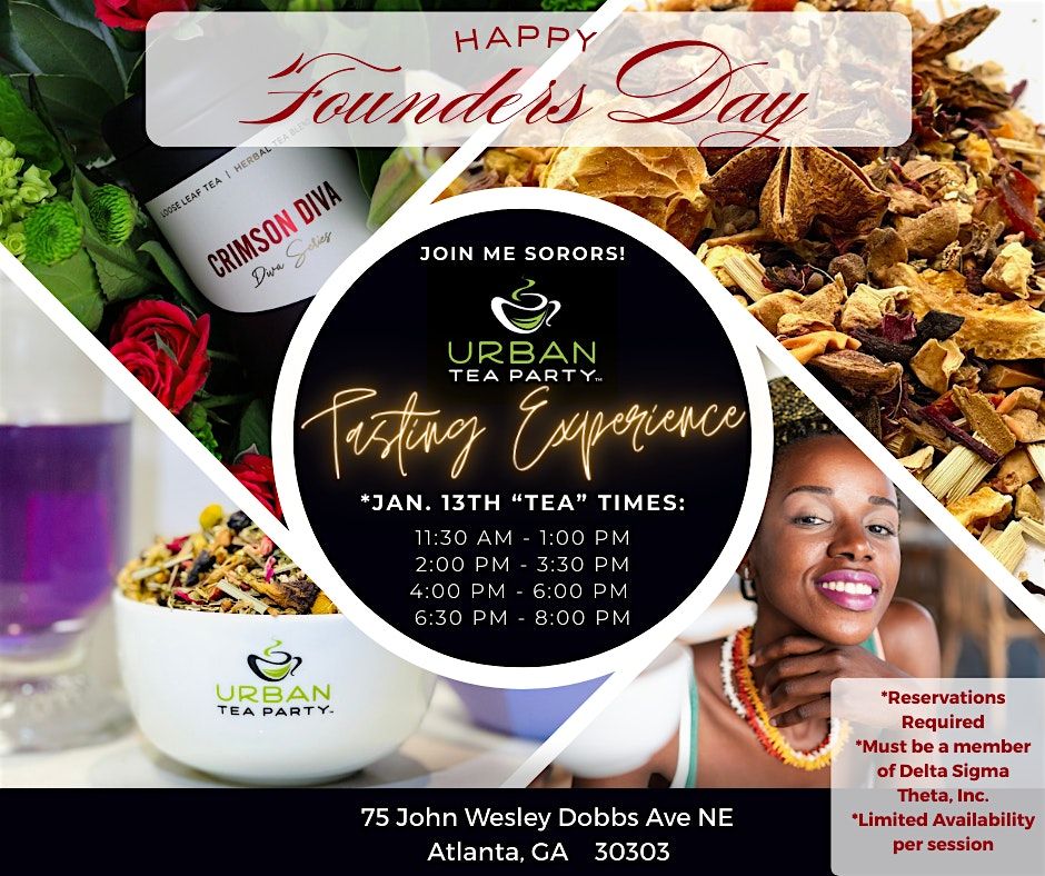 Join hostess Soror "Inde" Sherolyn Sellers, TEO of Urban Tea Party and the ladies of Delta Sigma Theta, Inc., for a tea tasting experience on our Founders Day! We will explore the world of teas, covering the types, how to prepare them, and how spot quality in your teas. We will certainly sample our DST inspired teas (Crimson Diva, Diva Nilla, Violets & Pearls and Elephant Chai). In addition to sampling teas, we will debut our NEW line of honey while enjoying light bites. This is a FREE event for members of Delta Sigma Theta only, and seating is limited, so reserve your spot today!