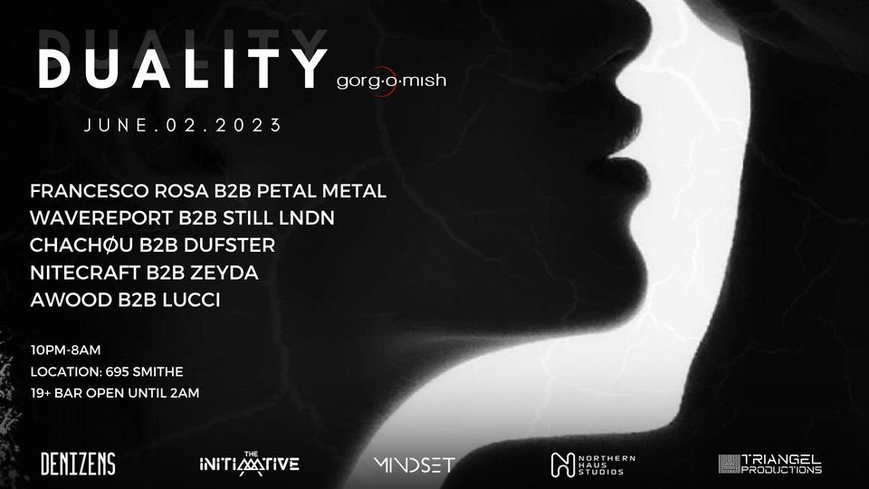 Dwell in 'Duality' on June 2nd with vancouver's hottest underground collectives, playing back to back sets all night long with their better half at your favorite after hour GORG-O-MISH