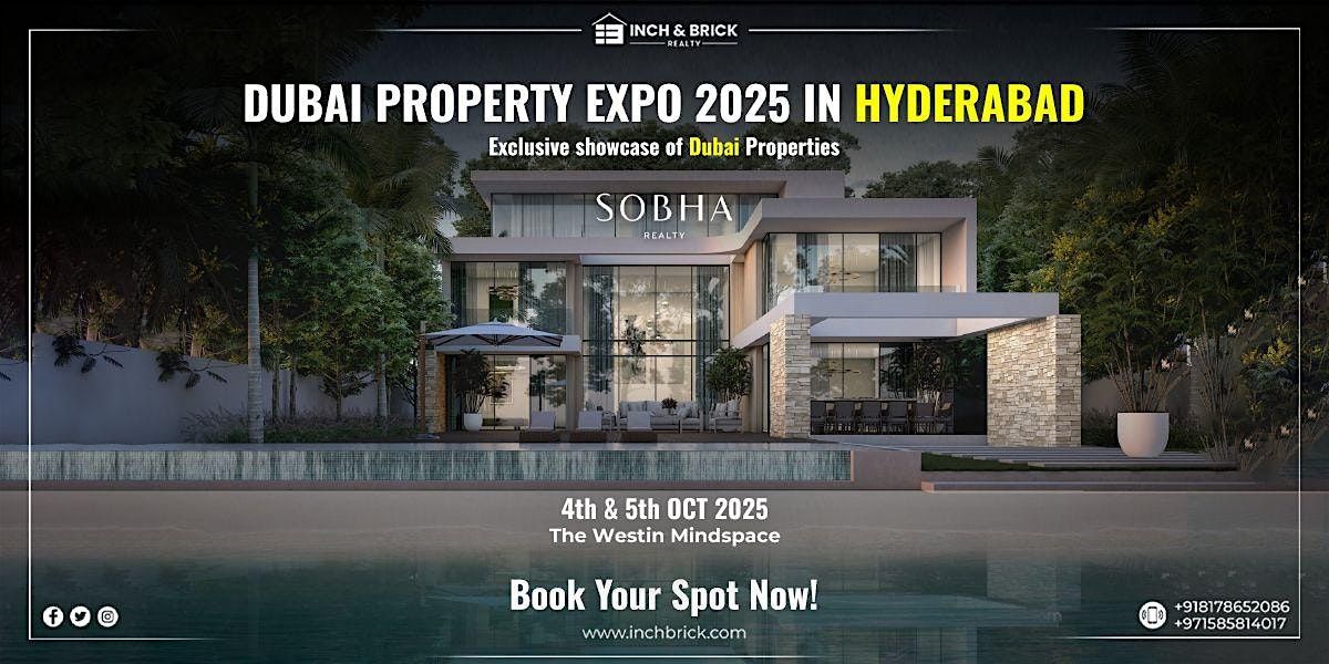 Inch & Brick Realty, in association with Sobha Realty, invites you to the 4th & 5th Dubai Property Expo in Hyderabad. This exclusive event will showcase Dubai’s most luxurious villas, contemporary apartments, and waterfront residences. Specially curated for investors, NRIs, families, and homebuyers, the expo offers an unmatched chance to discover premium properties, earn tax-free high returns, and secure long-term UAE residency.