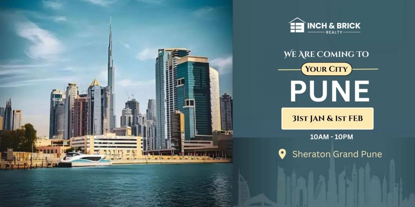 Pune is set to host a premium international real estate event with the Inch & Brick Dubai Property Expo in Pune, offering Indian investors an excellent opportunity to explore Dubai property investment in Pune itself. This exclusive two-day expo will be held on 31st January and 1st February at the Sheraton Grand Pune, Bund Garden Hotel, from 10:00 AM to 10:00 PM on both days.