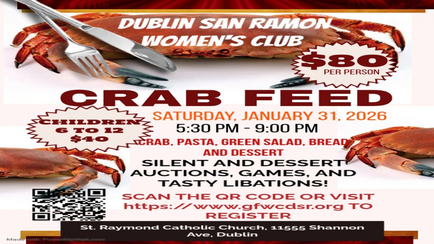 Get your tickets early for our annual and popular Crab Feed held on Saturday, January 31, 2026 at St. Raymond's Catholic Church, Moran Hallin Dublin, Ca. The event features an all-you-can eat Crab Dinner, a fabulous silent auction with experiences, restaurants, etc. and a scrumptious dessert auction! Sales are open to the public, members, family and friends.