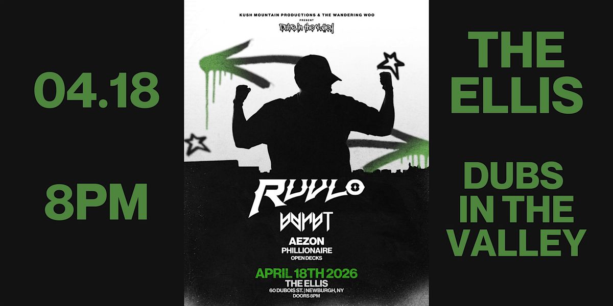 Dubs in the Valley is back once again for another family gathering this time featuring RUVLO, BAD HABIT, AEZON, PHILLIONAIRE including open decks at 8pm, come early and stay late, see you in the dance!