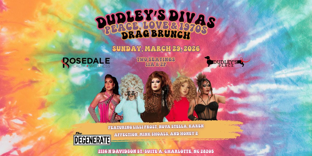 We are so excited to kick off our 2026 brunch season benefiting Dudley's Place at The Degenerate! There will be two seatings on Sunday, March 29, 2026. Grab a ticket to join us at either our 11A or 2P seating, both featuring performances from Karen Affection, Mink Shoals, Nova Stella, Lilli Serena Frost, and our special guest — Honey Z! Come dressed in your best 1970s attire! How groovy!