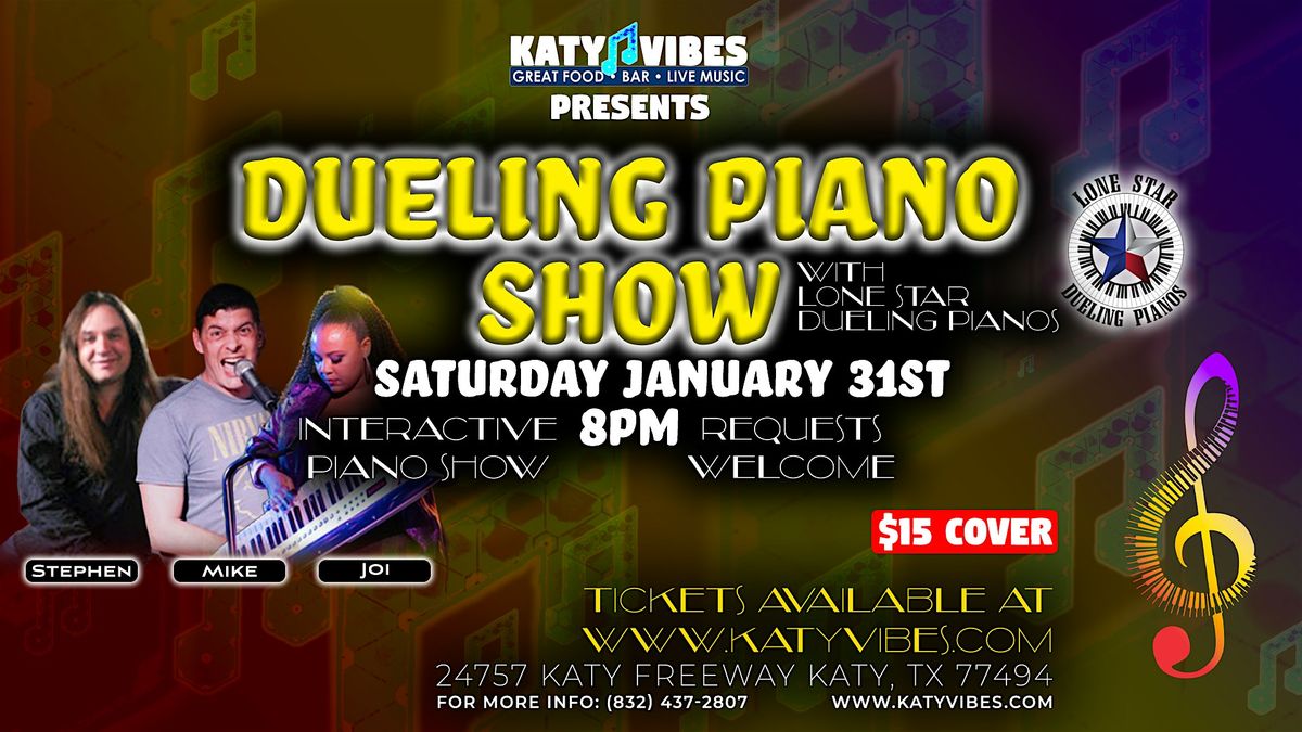 🎹 Dueling Piano Show hits Katy Vibes Saturday, January 31st at 8 PM—sing, clap, and laugh with Lone Star Dueling Pianos! 🎉