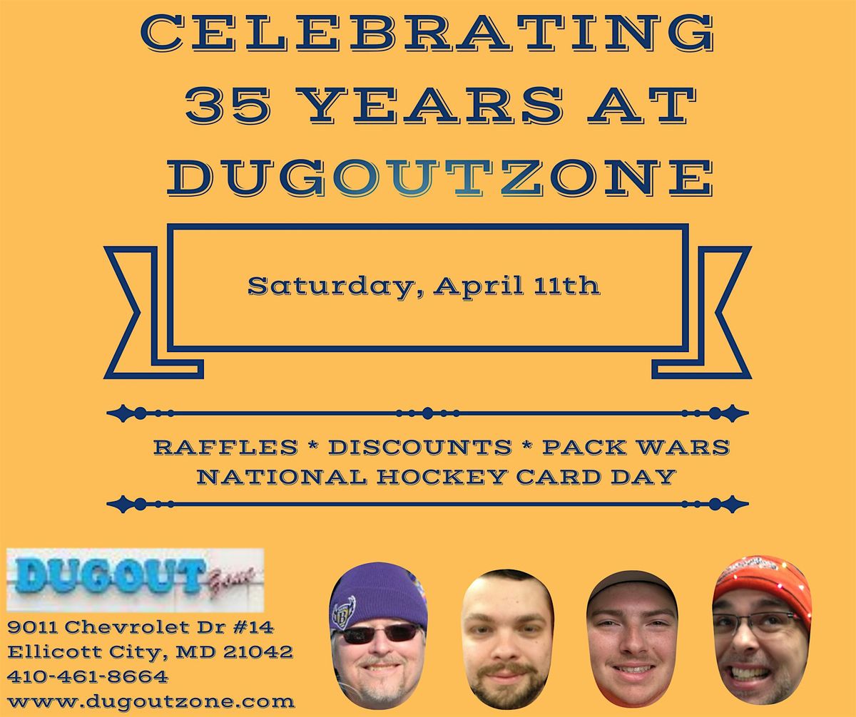 Join us for our 35th Anniversary and National Hockey Card Day on Saturday, April 11th with free hockey card packs, raffles and Pack Wars!