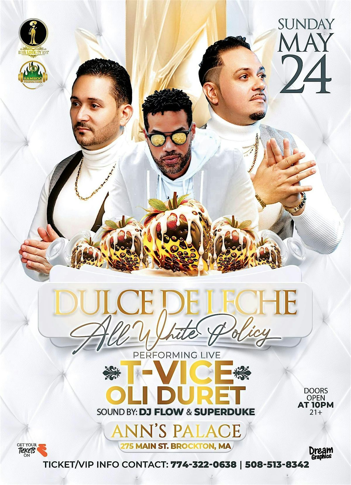 Join us at Ann's Palace on May 25, 2026 at 10:00 PM (ALL WHITE DRESS CODE )for an unforgettable night. Expect killer vibes and amazing tunes as TVICE teams up with Oli Duret to bring you Dulce de Leche. Don’t miss out on this live in-person event — it’s gonna be lit!