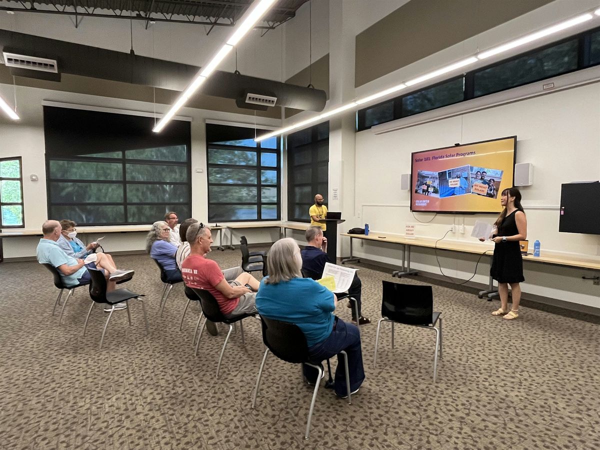 Have questions about Switch Together or solar? Join Solar United Neighbors staff at the Dunedin Public Library to get your questions answered and learn about our programs.This informational session will provide details on the solar Switch Together program for residents, businesses, and non-profits looking to go solar. The Switch Together program offers consumer protection and reduced solar PV system pricing. Information about the City’s rebate programs will also be shared.Sign up for Switch Together here: https://switchtogether.com/en/solar/dunedin/homeLocation: Dunedin Public Library, 223 Douglas Ave, Dunedin, FL, 34698This event is hosted on Mobilize.View on MobilizePrimary event communications come from Mobilize.