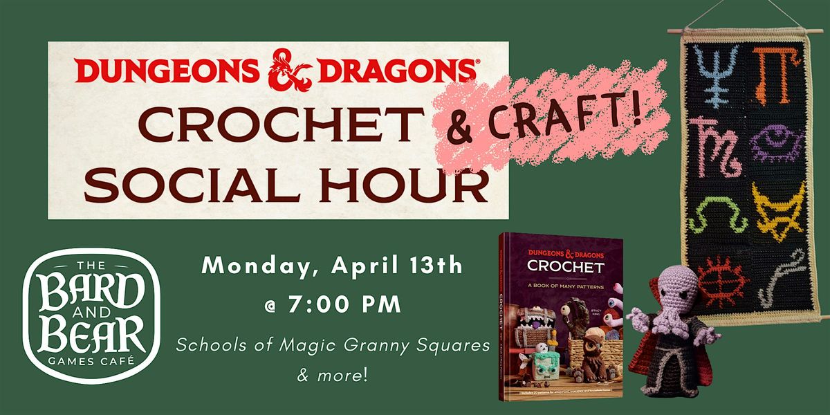 Come solo or with a friend, bring an ongoing project or start something new, and watch Megan attempt to learn how to crochet in real time. We promise cozy vibes and good chats, PLUS a chance to look through the (literally) fantastic patterns in the new D&D tome, and maybe even debate which School of Magic is superior...