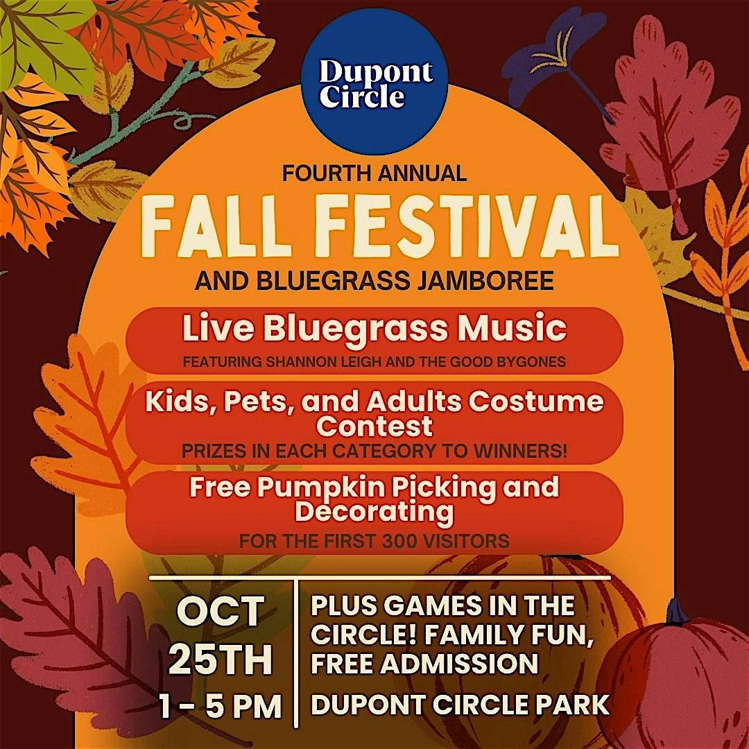 After the resounding success of last year’s First Annual Fall Festival and Bluegrass Jamboree, the Dupont Circle Business Improvement District is excited to announce that it will be bringing the festival back for a fourth year, continuing last year's smash hit: a festive Halloween spin! The event will take place on Saturday, October 25th from 1:00-5:00 p.m. in Dupont Circle Park.