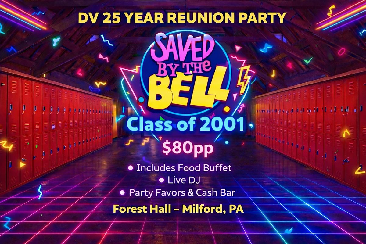 Hey alumni! It's time to catch up and relive the good old days at the DV 25 Year High School Reunion. Join us in person at the gorgeous Forest Hall for an unforgettable night filled with laughs, memories, and reconnecting with old friends Zach Morris style! Come dressed in your brightest neon and acid-wash denim ready to have a blast and make new memories! Event includes :