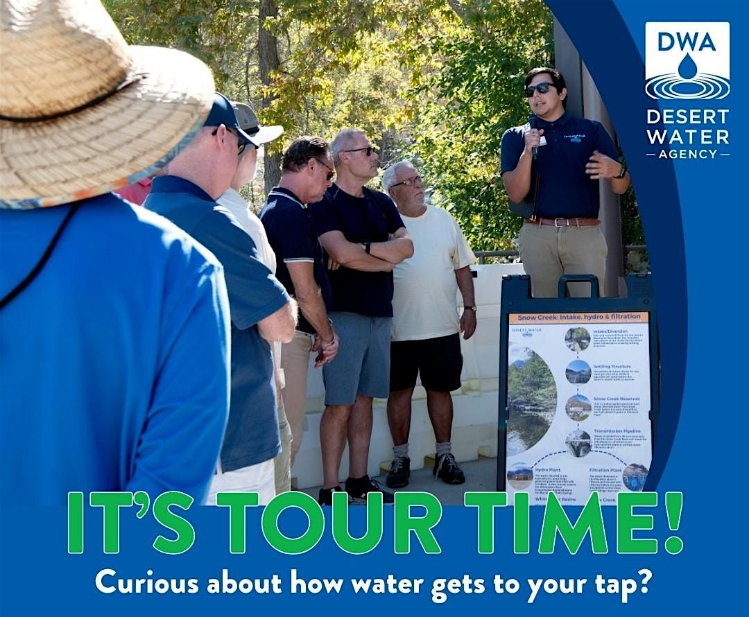 Participants will meet at our main office in Palm Springs (1200 S. Gene Autry Trail) and travel via charter bus to various locations. Please be aware that walking on uneven gravel and up moderate to steep hills is required to access some of the facilities. Lunch and a DWA swag bag will be provided.