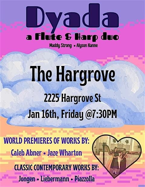 Dyada is a new flute & harp duo based in the DMV that invites listeners into a vivid, immersive soundscape where tradition and experimentation meet. Flutist Maddy Strong and harpist Alyson Kanne bring a shared love of contemporary, classical, and new music to every performance.