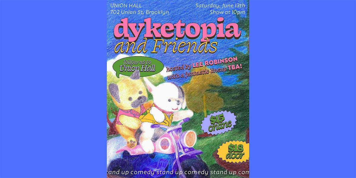 Beloved cult comedy show, Dyketopia, is back in Brooklyn for pride! Strap on your birkenstocks and join Lee Robinson for a dazzling night of queer & trans stand up comedy, right after Brooklyn Pride. Everyone is welcome at the show, except TERFs!