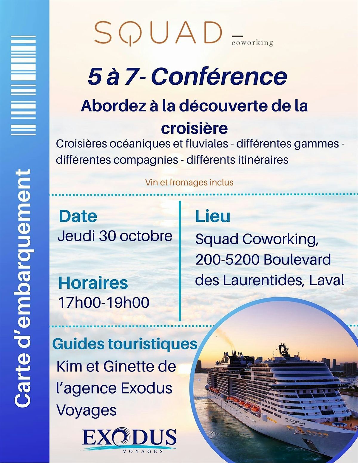 Cette conférence aura lieu le jeudi 30 octobre de 17h00 à 19h00.