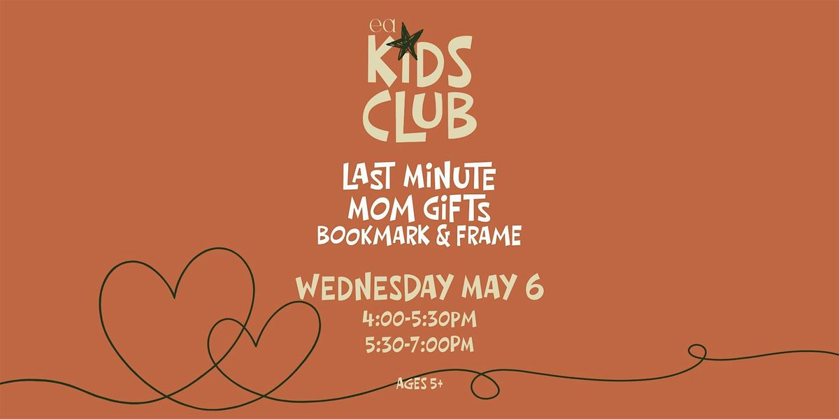 Join us for another EA Kids Club afternoon with a craft for the kids and happy hour for the grown-ups! Each ticket comes with materials and guided instruction from Ms. Rie to create a keepsake bookmark and picture frame to gift for Mother's Day.