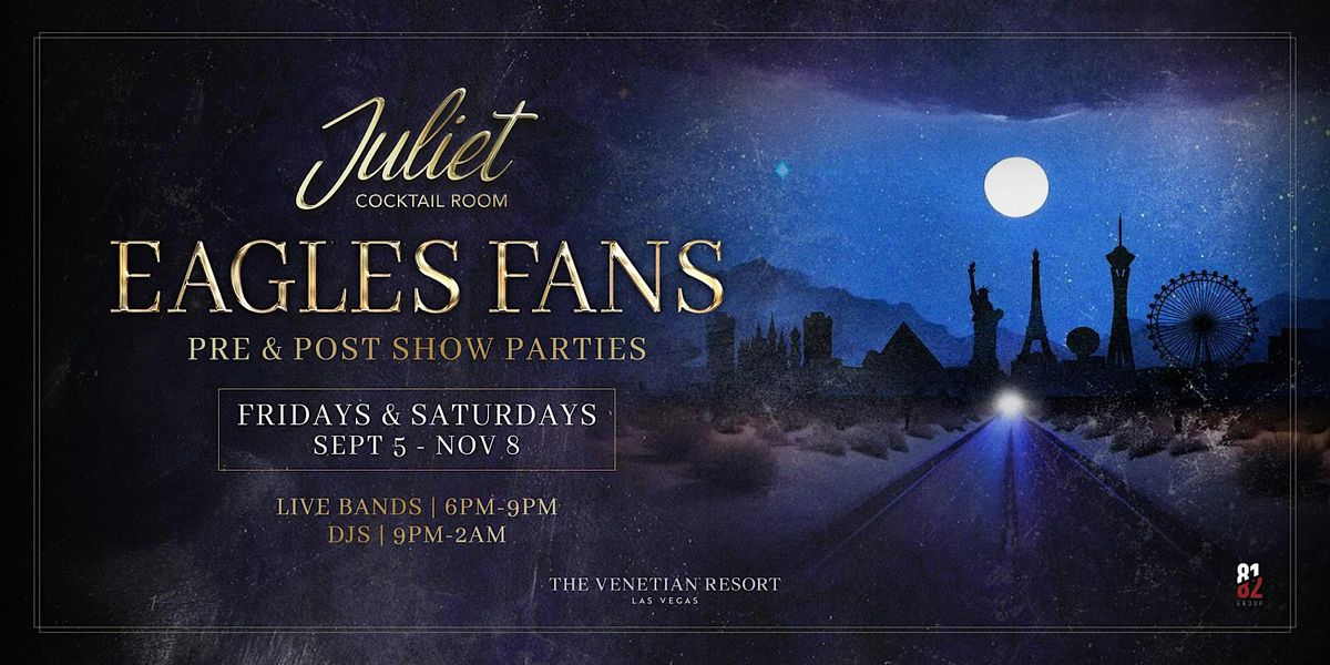 Join us at Juliet for the Eagles Pre & Post Show Party, happening Fridays and Saturdays from September 5 through November 8. Enjoy live bands from 6 PM to 9 PM, followed by Live DJs from 9 PM to 2 AM spinning the best of Eagles classics and hits from that era and genre!