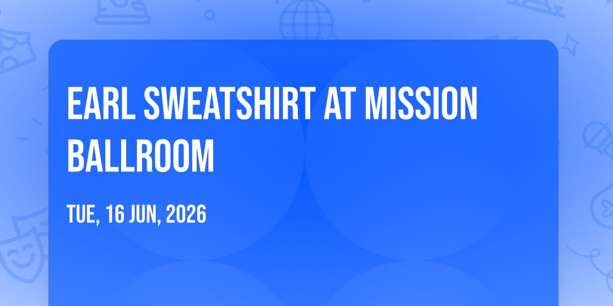 π Journey into wonder at Earl Sweatshirt at Mission Ballroom, where extraordinary experiences await around every corner! ποΈ Set against the backdrop of Mission Ballroom in dynamic Denver, CO, this event promises to exceed all expectations. π Join us on June 16th, 2026 at 07:00 PM for a celebration that combines innovation, entertainment, and community spirit in perfect harmony. β¨ There will be an atmosphere where memories are made and stories come alive, ensuring every guest experiences something truly remarkable. π This is more than just an event; it's a journey into the extraordinary!
