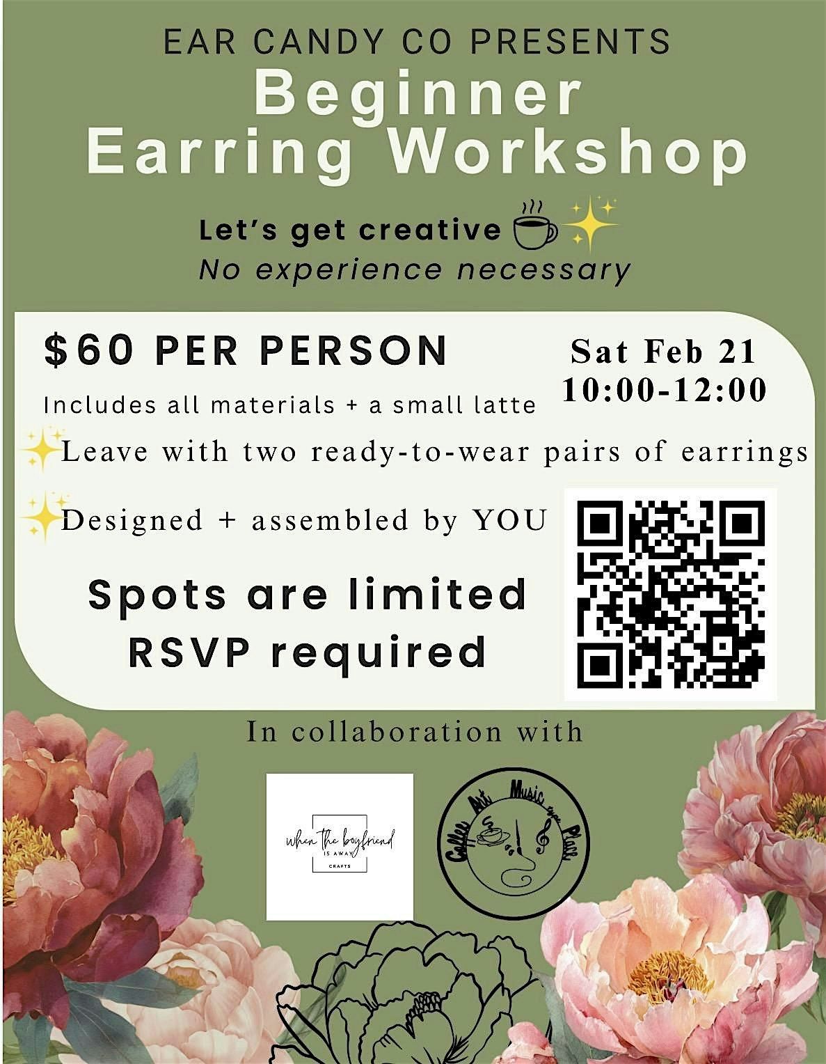 You’ll learn the basics of working with polymer clay while designing and creating your own one-of-a-kind earrings from start to finish. Bring your creativity (and maybe a friend!), and I’ll provide all the supplies, guidance, and good vibes.