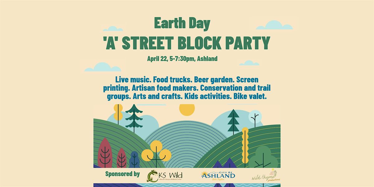 A Street in Ashland is about to become the most vibrant, joyful, action-packed Earth Day celebration you’ve ever seen—and it’s completely FREE! · Live music by Eight Dollar Mountain, Pozitronics, Elbow Room Taiko drummers, and Chrisman & Smith. ·