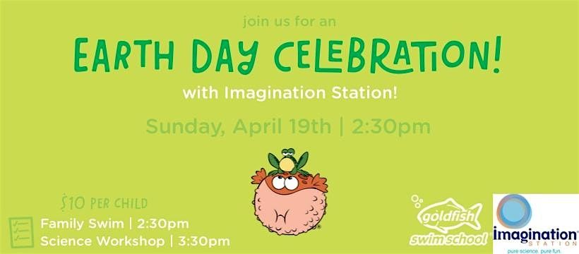 Our friends from Imagination Station are swimming by Goldfish Swim School to host a science workshop for Earth Day on Sunday, April 12th!