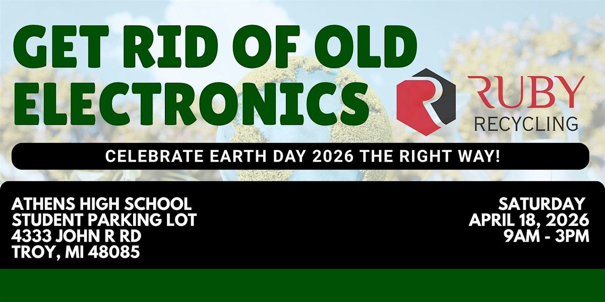 Join Ruby Recycling of Hazel Park Saturday April 18, 2026 for a community E-Scrap collection drive! Just load any old electronics listed below into your car and Ruby will take care of the rest!
