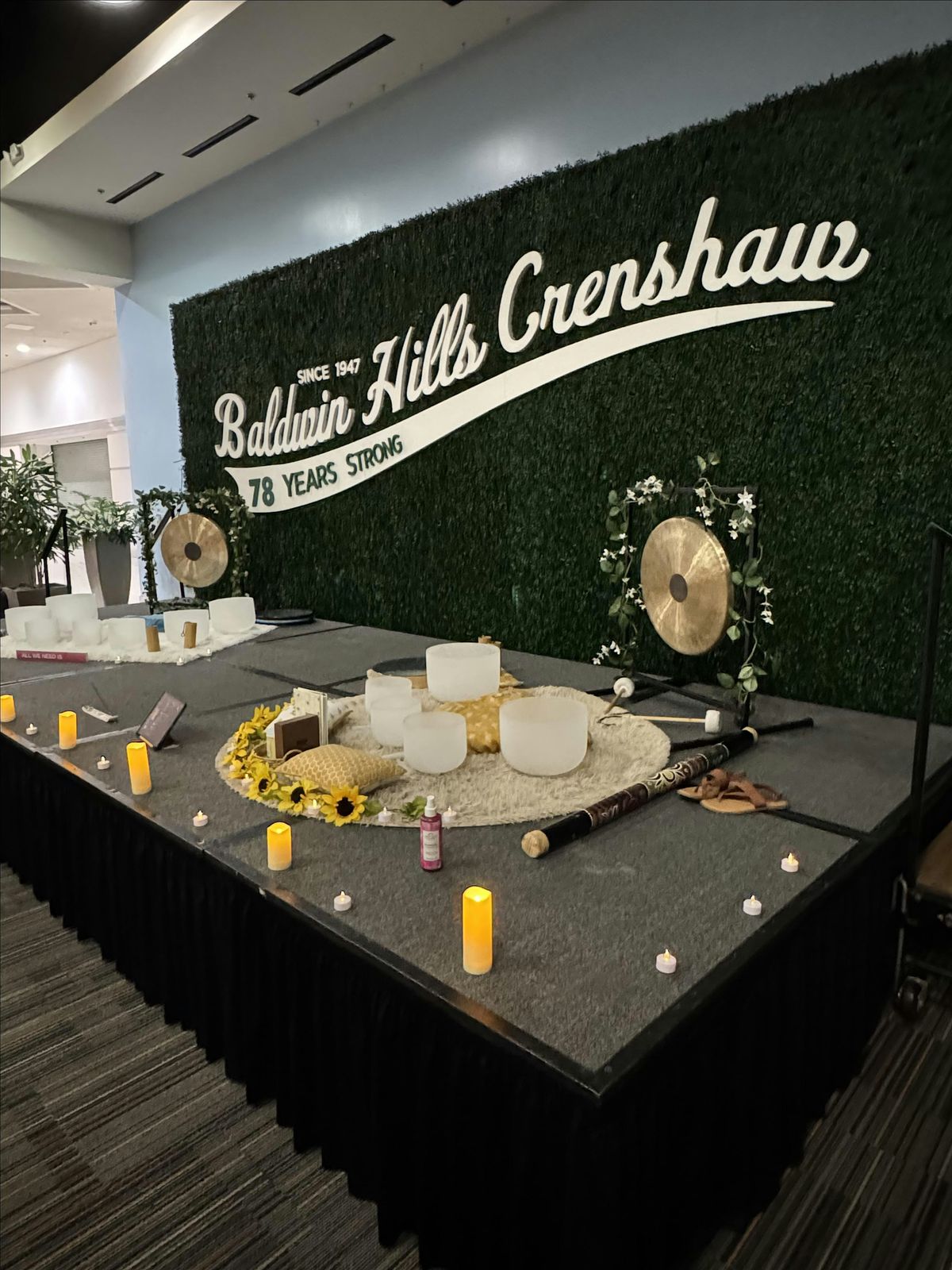 Experience a sound healing spiritual wellness session (including: Frosted crystal bowls tuned at 432hz, gong, Koshi chimes, ocean drum, & rain stick.)