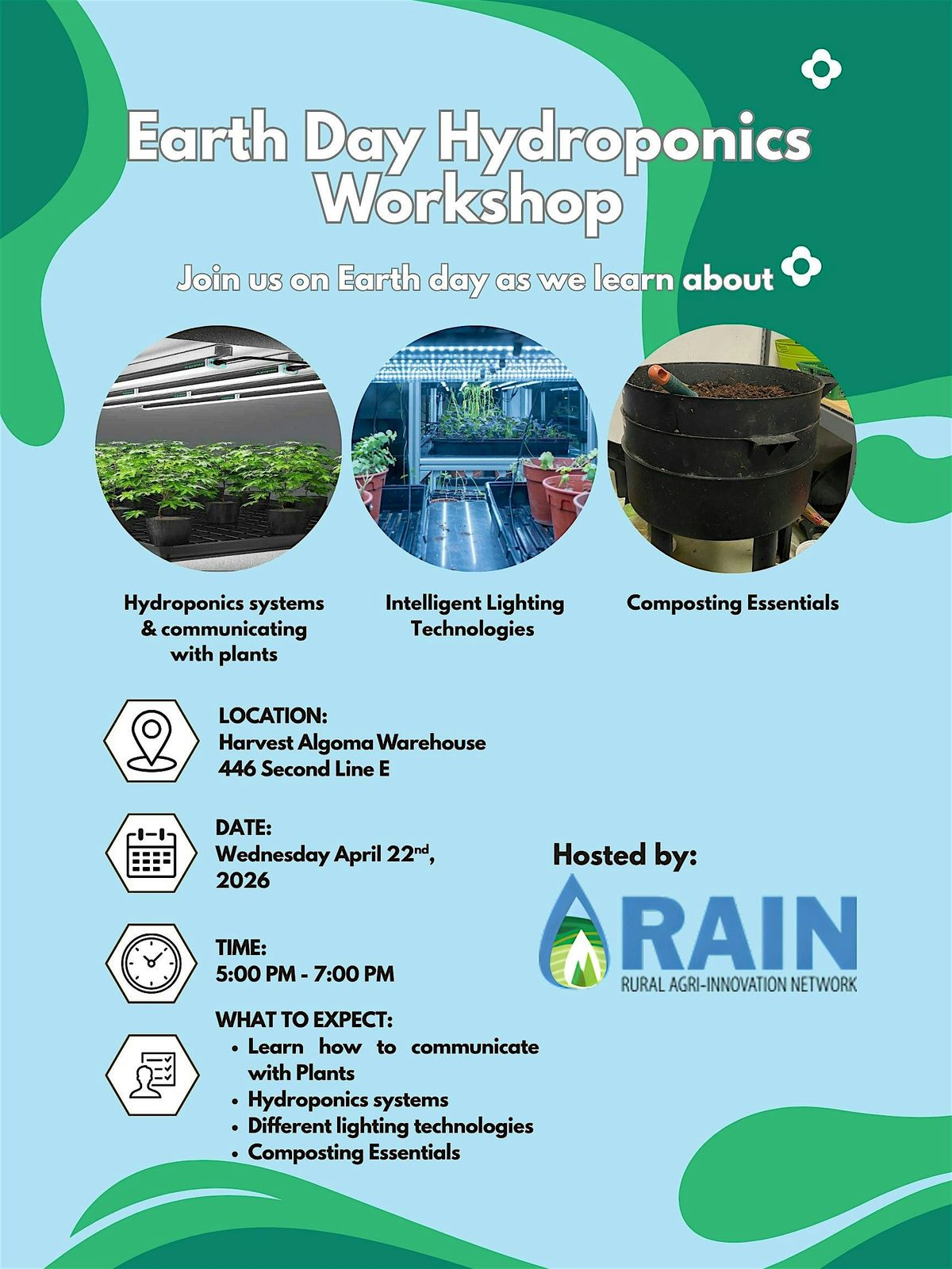 Level up your indoor growing game or learn more about sustainable practices with the Rural Agri-Innovation Network (RAIN) on Earth Day over a workshop dedicated to learn modern agriculture techniques!
