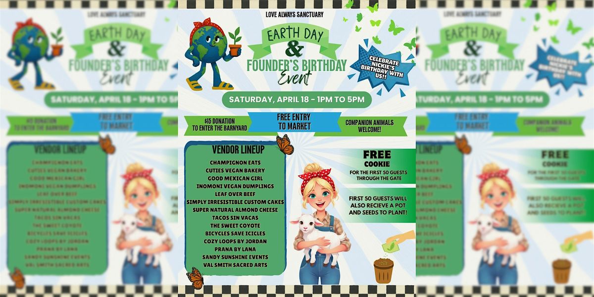 Join us for a joyful afternoon at our Earth Day & Founder's Birthday Event! A vegan-inspired farmers market with local vendors, delicious food, refreshing drinks, and community connection!