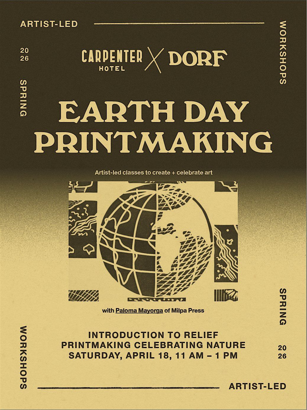 Celebrate Earth Day with a hands-on linocut workshop led by artist of . In this intimate session, guests will learn the basics of linocut printmaking—designing, carving, and printing their own custom stamp inspired by the natural world. Whether you’re new to printmaking or looking to deepen your practice, this workshop offers a thoughtful, tactile way to reflect on our connection to the environment and leave with a one-of-a-kind stamp to commemorate the day.