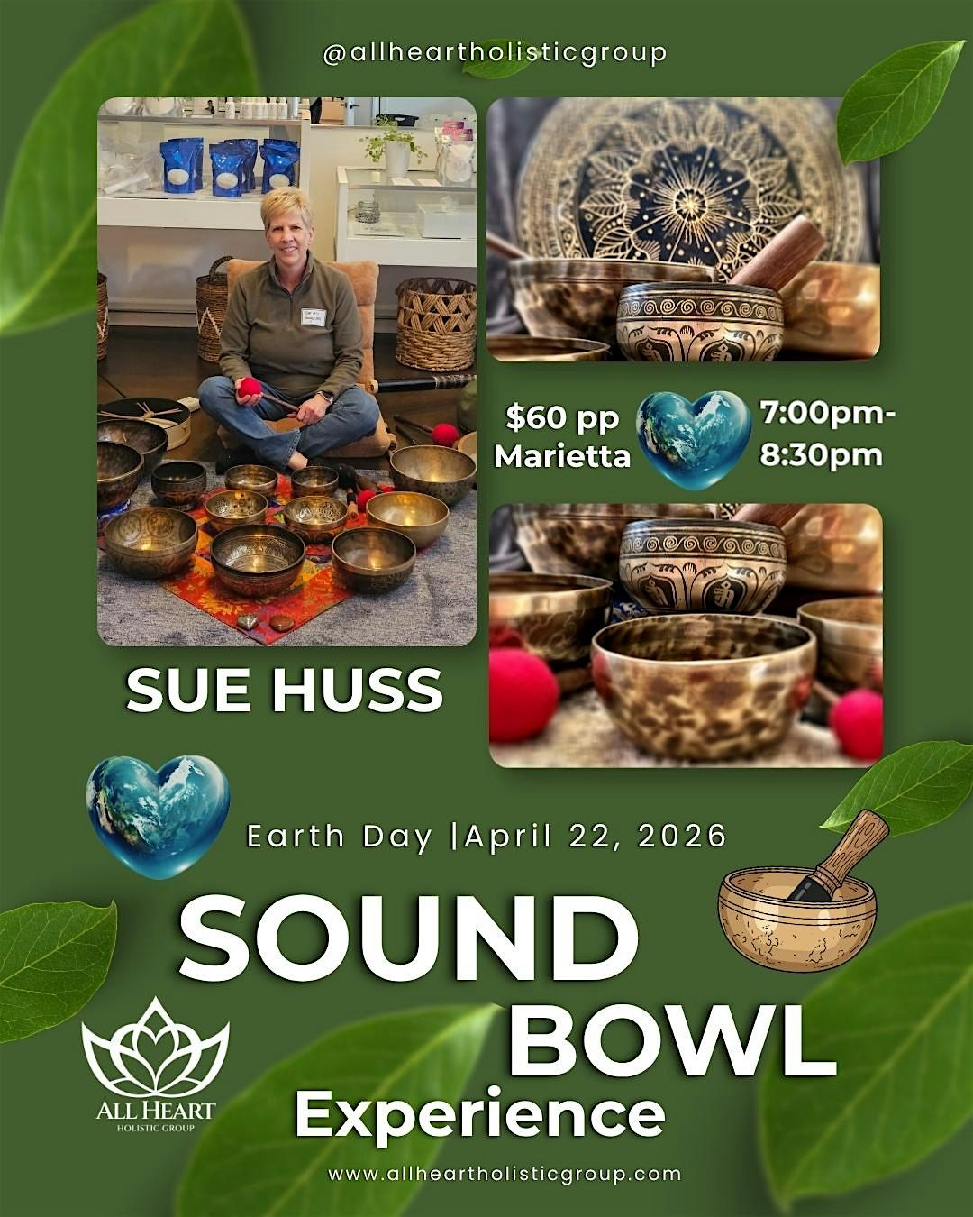 Step into stillness and reconnect with the natural rhythm of your body and the Earth. Join All Heart Holistic Group for a deeply restorative Earth Day Sound Bowl Experience led by Sue Huss.