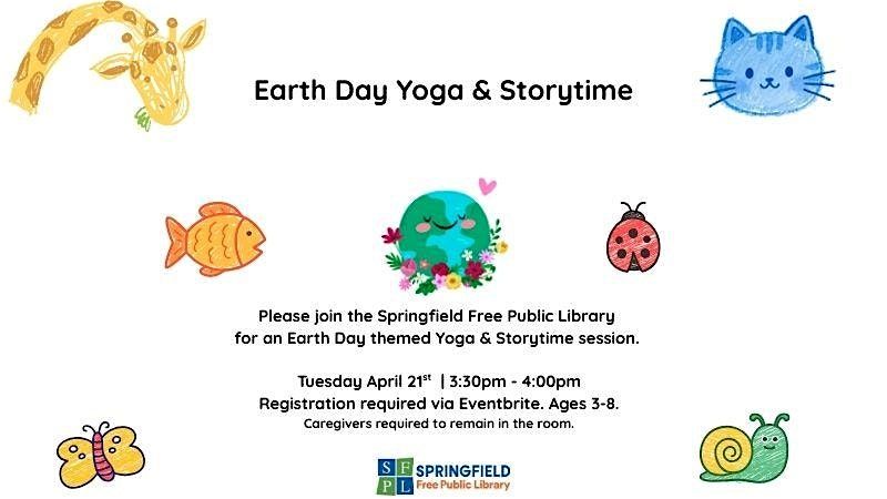 Earth Day themed Yoga & Storytime session. We will provide mats. Registration required via Eventbrite. Ages 3-8. Caregivers are requiredAbout this Event