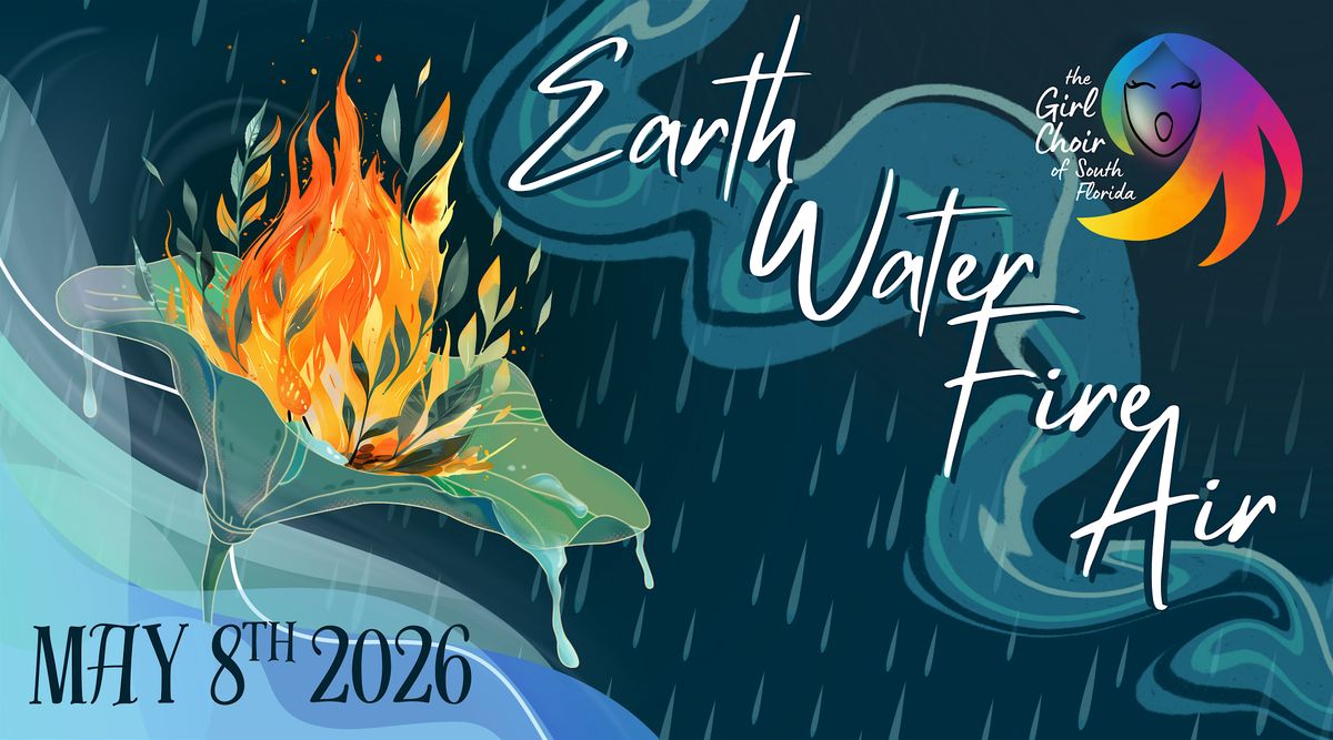 What connects us to the natural world and to each other? The Girl Choir of South Florida’s Spring concert, Earth, Water, Fire, Air, explores this question through music inspired by the elements. Featuring a rich variety of genres and styles, the program includes Andrea Ramsey’s grounded “Truth,” Ethan Sperry’s Bollywood-inspired “Barso Re,” and Jonathan R. Pieslak’s fiery “Solar Flares.” The concert culminates in Anna Dembska’s powerful “Kore Chant,” where all ensembles join together to remind us of our collective strength and the transformative power of nature: “She changes everything she touches, and everything she touches changes.”